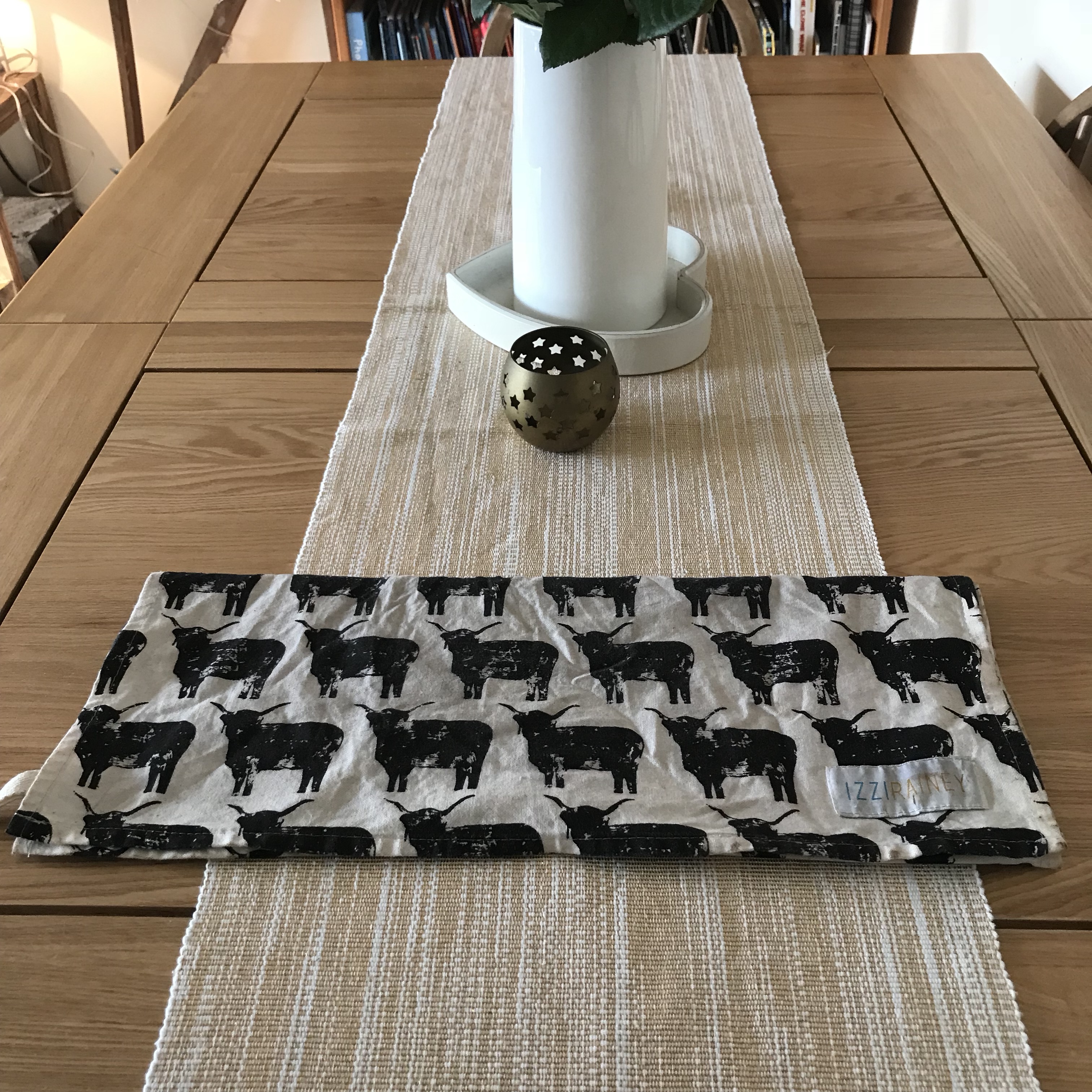 I think Izzy and Lara realised from all my gushy comments about the farm and the cows that I was a bit cow obsessed so very kindly sent me a beautiful oven glove and tea towel stamped with their gorgeous highland cow design.