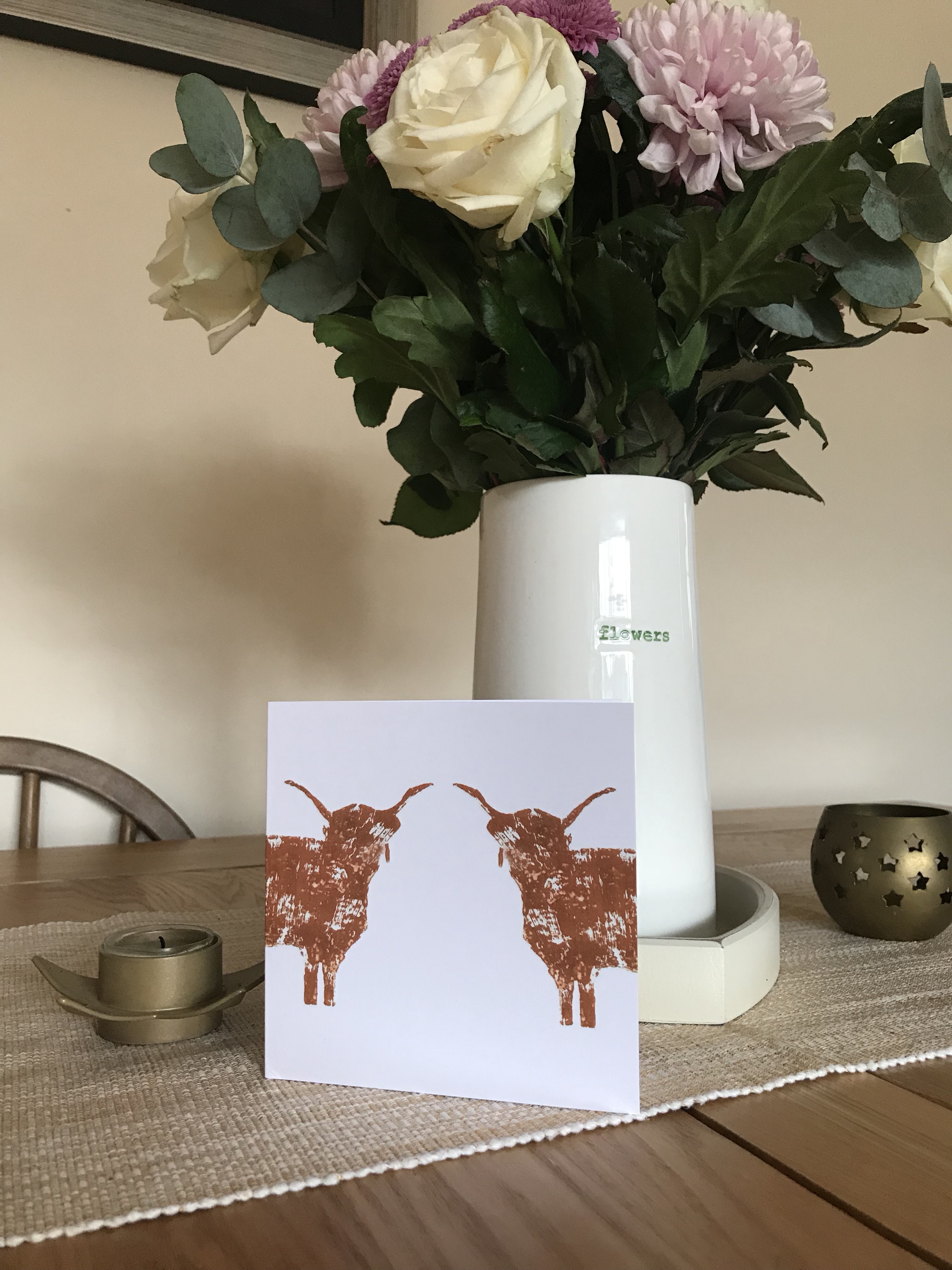 When I looked into their beautiful hand stamped creations I fell in love with them. Not just because of how gorgeous their products are but also because they make all manner of highland cow stamped creations such as bags, cards, chopping boards, trays, oven gloves, tea towels and even jewellery.